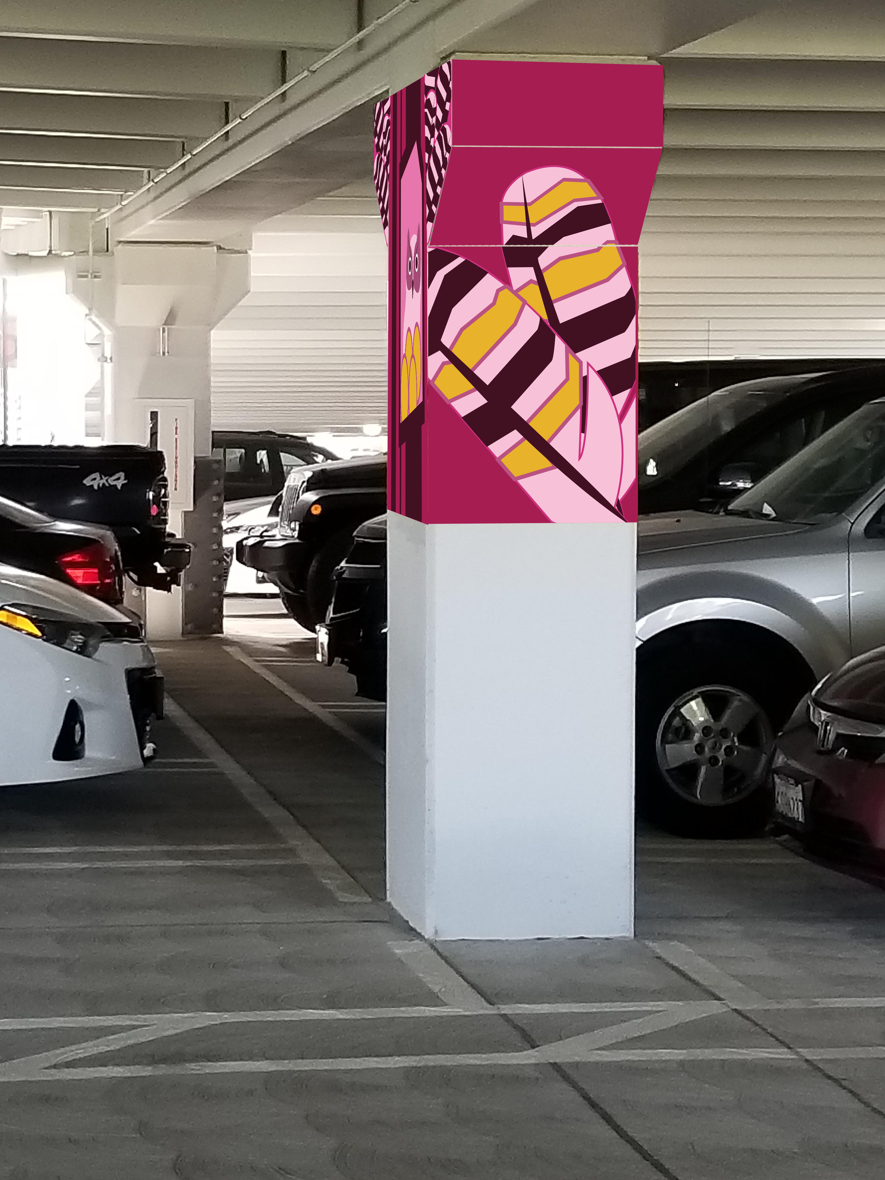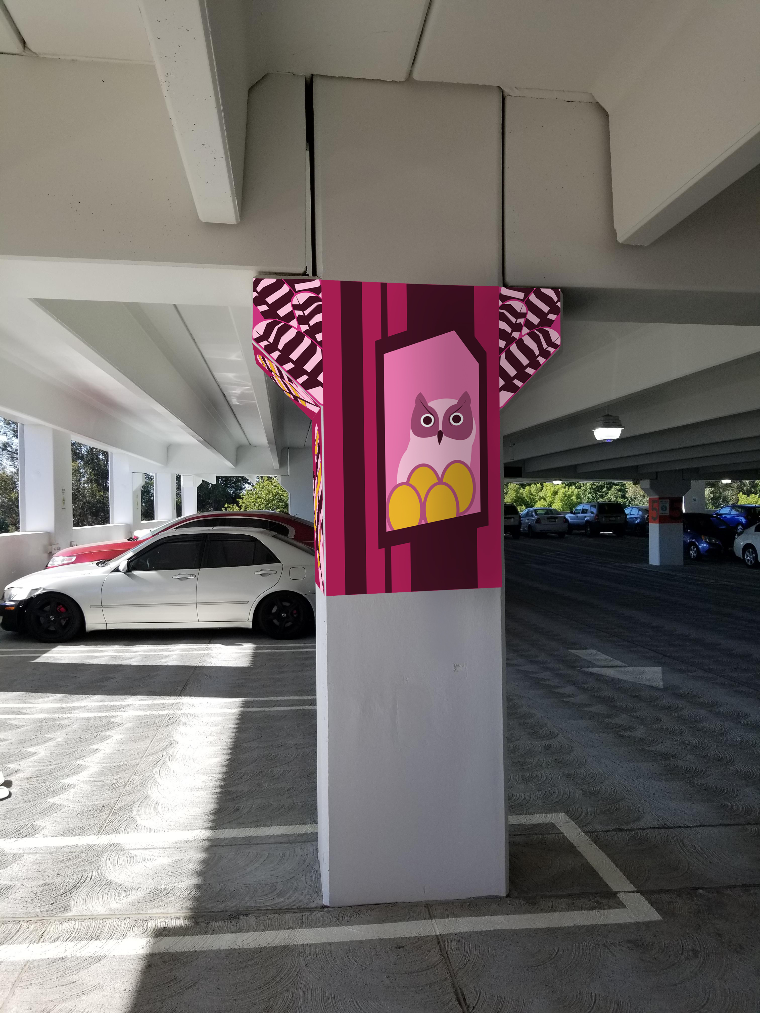 Design work for the re-modeling of the new Parking Structure Five by the Arboretum. This was a team project, so various designs were made for each floor, this design is for the 4th floor.